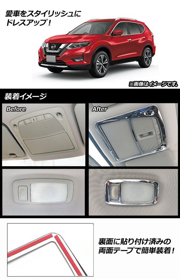 AP ルームランプガーニッシュ 鏡面シルバー ABS樹脂製 AP-IT282-3P-KSI 入数:1セット(3個) ニッサン エクストレイル T32 2013年12月〜