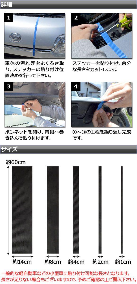 ボンネットストライプステッカー カーボン調 小型車汎用 選べる20カラー 入数:1セット(5枚) AP-CF1268 カラー: ブラック ホワイト レッド ブルー イエロー グリーン オレンジ パープル ピンク ネイビー ブラウン ボルドー クリア ゴールド シルバー ガンメタリック マゼンタ ダークグリーン メタリックブルー ライトブルー