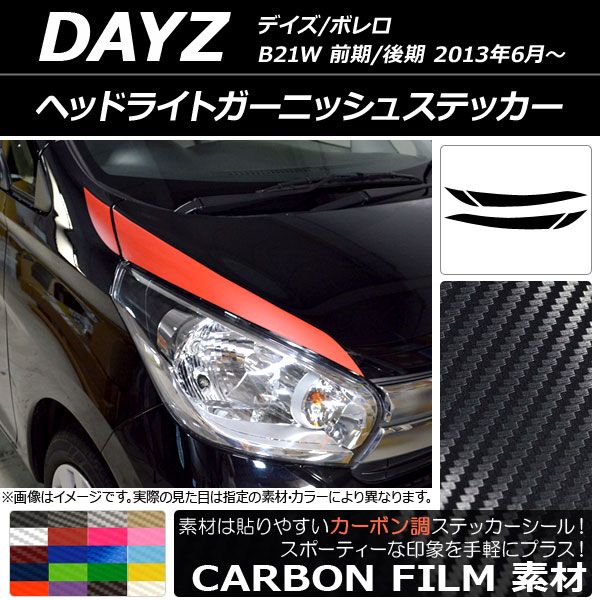 AP ヘッドライトガーニッシュステッカー カーボン調 ニッサン デイズ/ボレロ B21W 前期/後期 2013年06月〜 選べる20カラー AP-CF3624 入数:1セット(4枚)