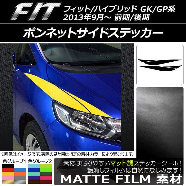 ボンネットサイドステッカー ホンダ フィット/ハイブリッド GK系/GP系 前期/後期 2013年09月〜 マット調 色グループ2 AP-CFMT2342 入数:1セット(4枚)