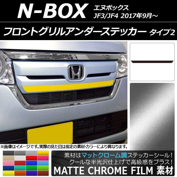 フロントグリルアンダーステッカー ホンダ N-BOX JF3/JF4 2017年09月〜 マットクローム調 タイプ2 選べる20カラー AP-MTCR2825