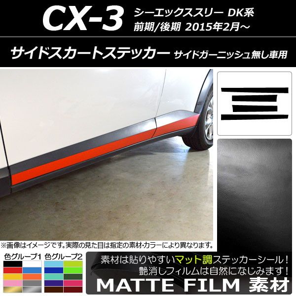 サイドスカートステッカー マツダ CX-3 DK系 前期/後期 サイドガーニッシュ無し車用 2015年02月〜 マット調 色グループ1 AP-CFMT3201 入数:1セット(4枚)