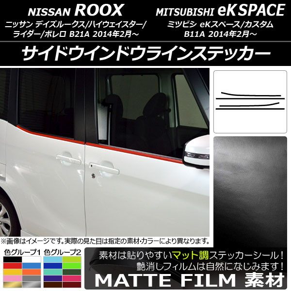 サイドウインドウラインステッカー ニッサン/ミツビシ デイズルークス/eKスペース B21A/B11A マット調 色グループ1 AP-CFMT3530 入数:1セット(4枚)