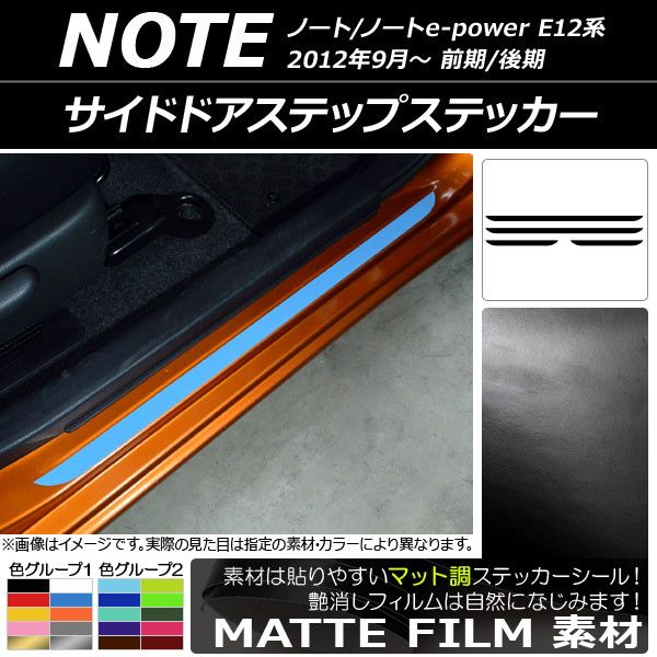サイドドアステップステッカー ニッサン ノート/ノートe-power E12系 前期/後期 2012年09月〜 マット調 色グループ2 AP-CFMT3331 入数:1セット(4枚)