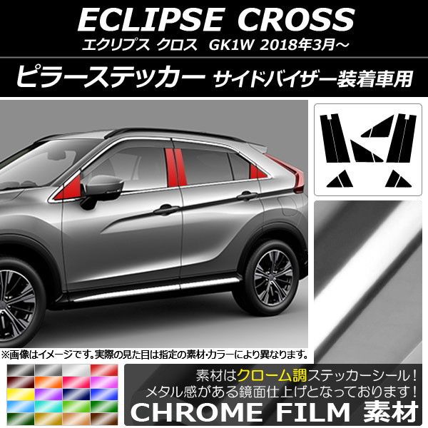 ピラーステッカー ミツビシ エクリプス クロス GK1W サイドバイザー装着車用 2018年03月〜 クローム調 選べる20カラー AP-CRM3819 入数:1セット(12枚)