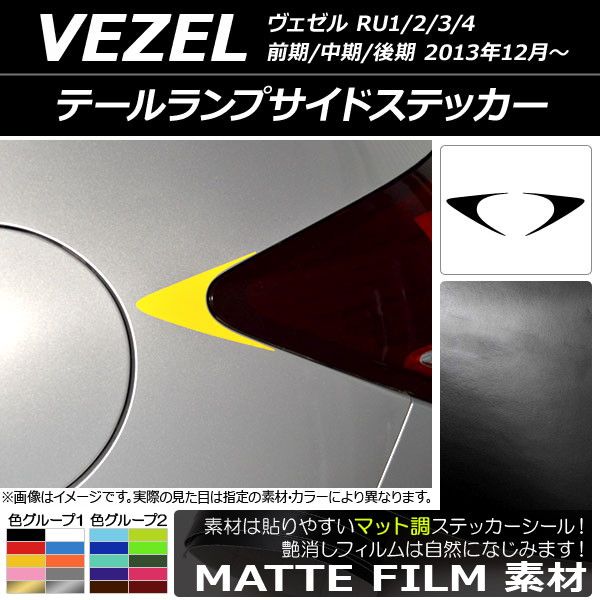 テールランプサイドステッカー マット調 ホンダ ヴェゼル RU1/2/3/4 前期/中期/後期 2013年12月〜 色グループ2 入数:1セット(2枚) AP-CFMT3436