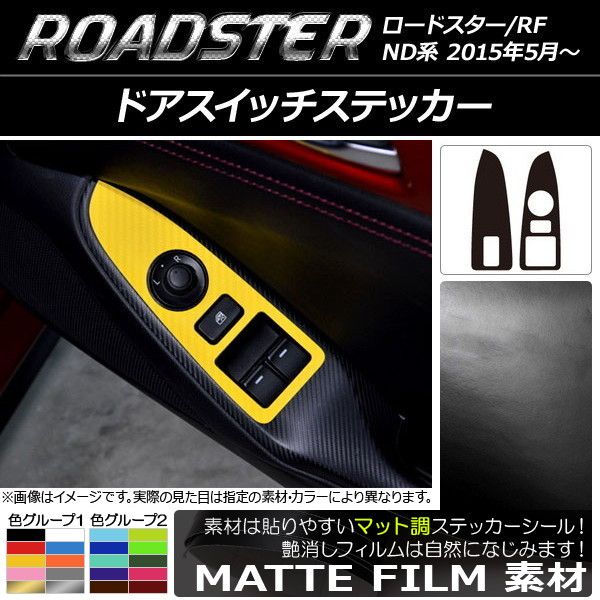 ドアスイッチステッカー マット調 マツダ ロードスター/ロードスターRF ND系 2015年05月〜 色グループ1 入数:1セット(2枚) AP-CFMT2508 色グループ1: ブラック ホワイト レッド ブルー イエロー オレンジ ピンク グレー ゴールド シルバー
