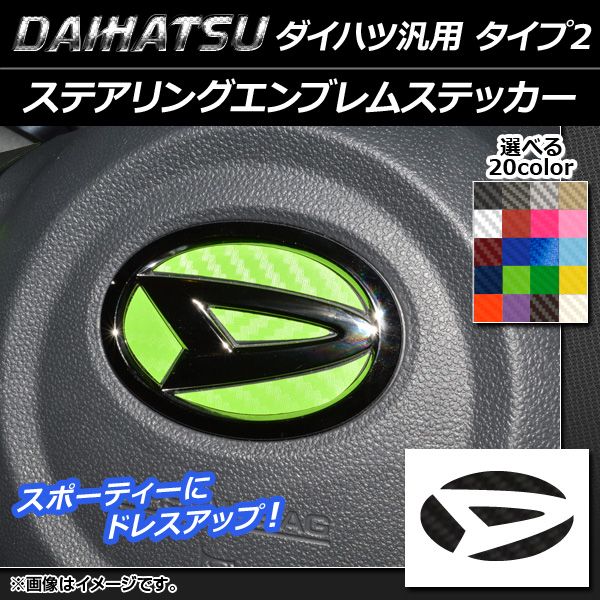 ステアリングエンブレムステッカー カーボン調 ダイハツ汎用 タイプ2 選べる20カラー AP-CF1010 カラー: ブラック ホワイト レッド ブルー イエロー グリーン オレンジ パープル ピンク ネイビー ブラウン ボルドー クリア ゴールド シルバー ガンメタリック マゼンタ ダークグリーン メタリックブルー ライトブルー
