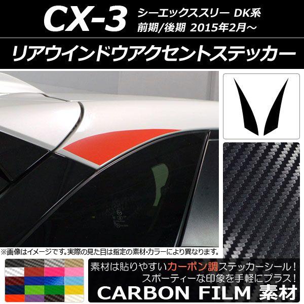 リアウインドウアクセントステッカー カーボン調 マツダ CX-3 DK系 前期/後期 2015年02月〜 選べる20カラー 入数:1セット(2枚) AP-CF3204 カラー: ブラック ホワイト レッド ブルー イエロー グリーン オレンジ パープル ピンク ネイビー ブラウン ボルドー クリア ゴールド シルバー ガンメタリック マゼンタ ダークグリーン メタリックブルー ライトブルー