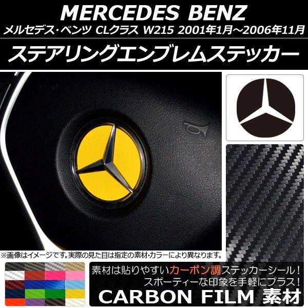 ステアリングエンブレムステッカー カーボン調 メルセデス・ベンツ CLクラス W215 2001年01月〜2006年11月 選べる20カラー AP-CF2631