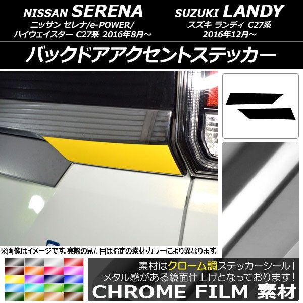 バックドアアクセントステッカー クローム調 ニッサン/スズキ セレナ/ランディ C27系 選べる20カラー 入数:1セット(2枚) AP-CRM3840 カラー: ブラック ホワイト レッド ブルー イエロー グリーン オレンジ パープル ピンク ネイビー ブラウン ボルドー ゴールド シルバー マゼンタ ダークグリーン ライトグリーン ライトブルー ローズゴールド シアン