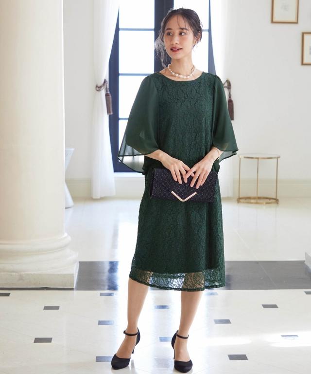 女性らしいキレイなラインを演出してくれるワンピース レース使いのワンピースに、シフォン袖の柔らかい雰囲気をプラス こだわりポイントシンプルで幅広いシーンで着回しやすい定番ワンピース女性らしいキレイなシルエットを演出してくれるシフォン袖で軽やかな印象を表現膝が隠れる丈感にこだわり、幅広い年齢の方に着用頂けます!結婚式・二次会などの華やかなシーンはもちろん、お呼ばれ・食事会など、セミフォーマルシーンでも大活躍 体型カバーポイントシフォンフレア袖がおしゃれに気になる二の腕をカバーしてくれます 膝が隠れる丈感