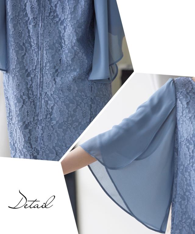 【結婚式・パーティードレス】シフォンフレア袖デザインレースサックワンピースドレス<大きいサイズ有>