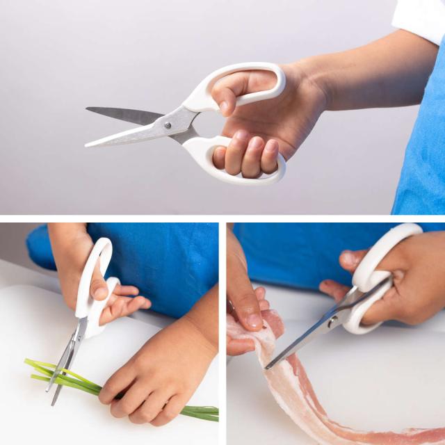 ●キッチンバサミは、小さな手でも使いやすいサイズ感と切れ味の良さが特徴です。