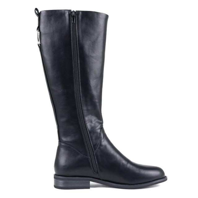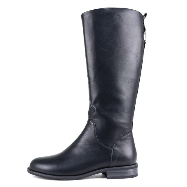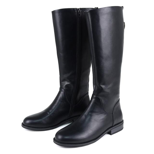 ロングブーツ レディース ラウンドトゥ 軽量 ジョッキーブーツ バックル 太ヒール 防寒 美脚 おしゃれ 3cmヒール No.9071 22.5cm〜24.5cm 黒 ブラック 茶 ダークブラウン LiBERTYDOLL リバティードール