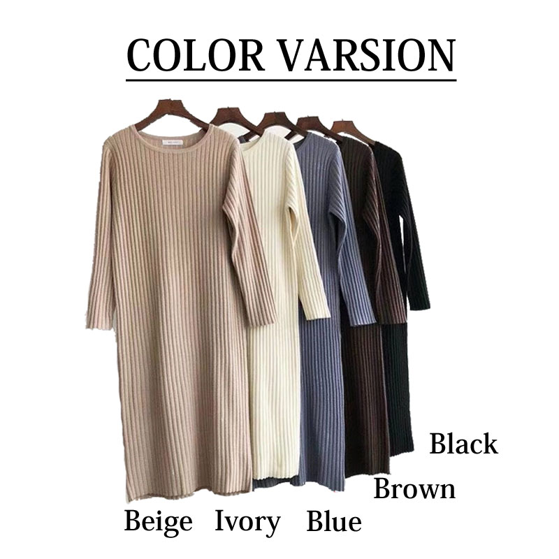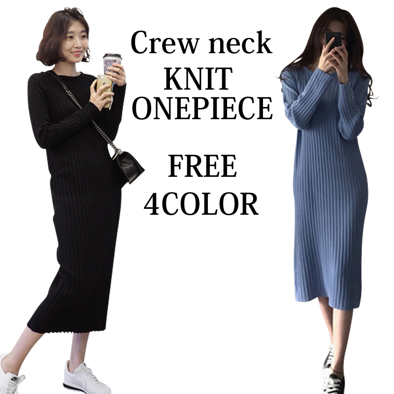クルーネックニットワンピース リブニット ニットワンピ 無地 クルーネック 丸首 ロングワンピ ロング丈 リブ 長袖 春秋冬 レディース きれいめ セクシー フェミニン スタイリッシュ クール かわいい 2022新作 フリー