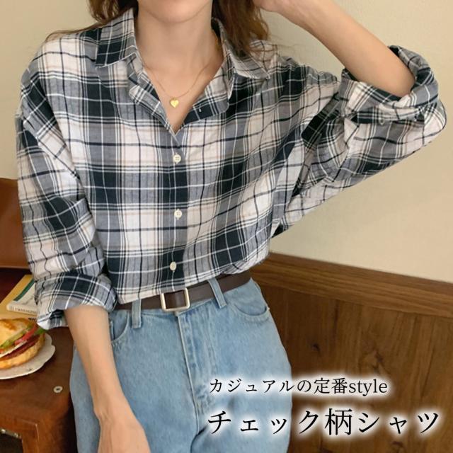 春新作 シャツ トップス レディース 春秋 おしゃれ かわいい ゆったり シャツ 長袖 チェック柄 大人可愛い シンプル フロント ボタン 前開き 薄手 サッカー風 リップル 着回し レギュラーカラー バック ボックスプリーツ
