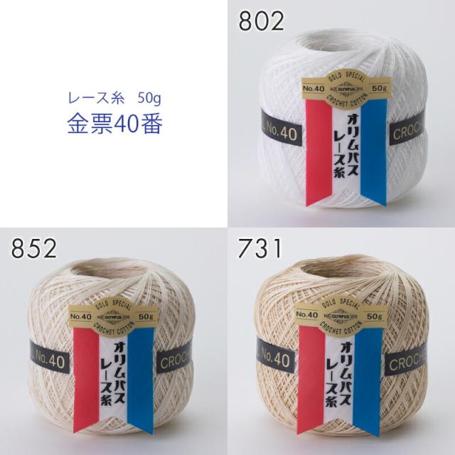 レース糸 40番 オリムパス 金票レース糸 40番 #40 50g レース糸 日本製 コットン 綿100% レース針 かぎ針 レディース レース編み 手編み 編み物 手芸 ハンドメイド 手作り 帽子 ショール ストール セーター ベスト