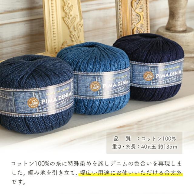 コットン 毛糸 パピー ピマデニム 合太 日本製 コットン 春夏毛糸 サマーヤーン かぎ針 棒針 ニット 手編み 編み物 レディース 手芸 ハンドメイド 手作り 帽子 マフラー スヌード ストール セーター ベスト