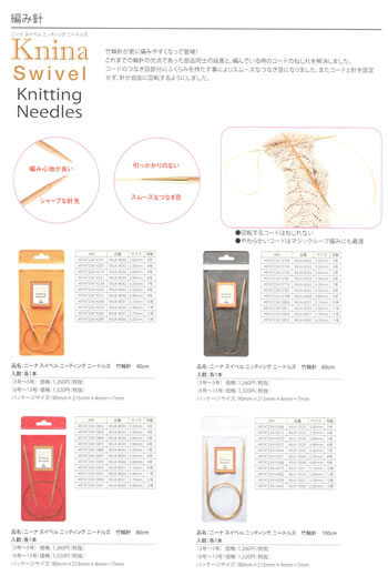 【チューリップ】Knina Swivel ニーナ スイベル ニッティング ニードルズ 竹輪針 60cm 4号サイズ:60cm 4号