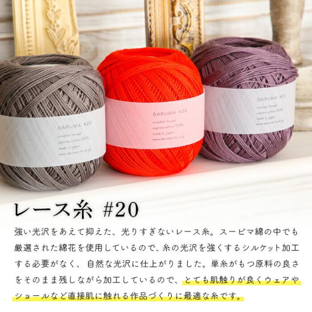 レース糸 20番 ダルマ レース糸 20番 #20 毛糸 日本製 サマーヤーン 夏糸 コットン 綿 レース糸 かぎ針 レース編み 手編み 編み物 レディース 手芸 ハンドメイド 手作り アクセサリー 小物 帽子 ストール セーター ベスト