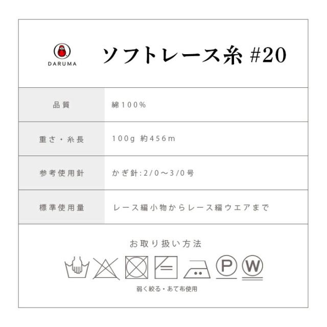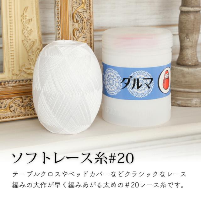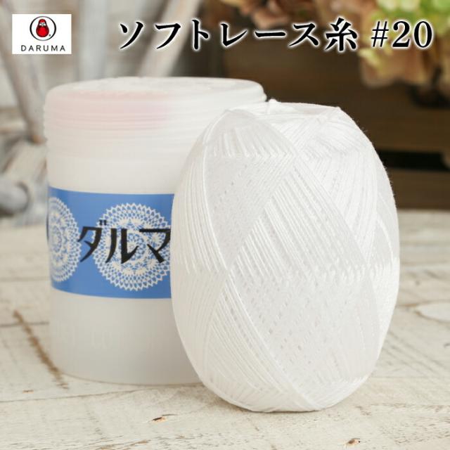 レース糸 20番 ダルマ ソフトレースヤーン レース糸 20番 #20 100g 白 ホワイト 日本製 綿 コットン かぎ針 レース針 レディース レース編み 手編み 編み物 手芸 ハンドメイド 手作り 帽子 ショール ストール セーター ベスト