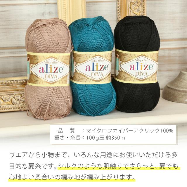 毛糸 alize アリゼ ディーバ マイクロファイバー アクリル トルコ製 100g玉 サマーヤーン 夏糸 毛糸 セール かぎ針 棒針 レディース 手編み 編み物 手芸 ハンドメイド 手作り 帽子 ショール ストール セーター ベスト
