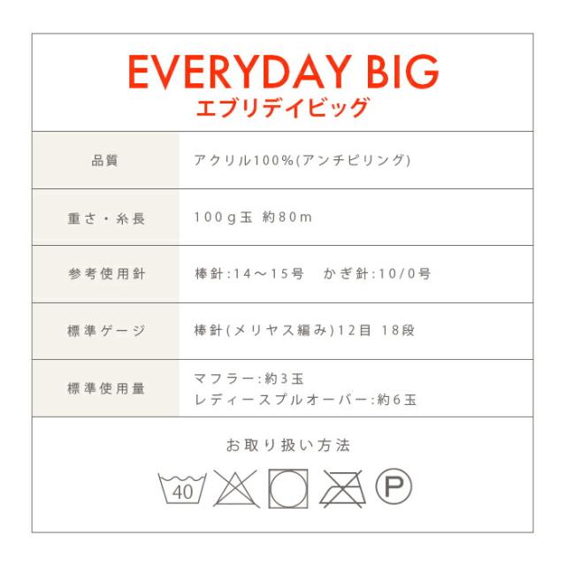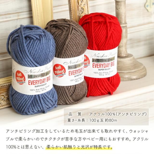 毛糸 極太 内藤商事 NASKA エブリデイ ビッグ 秋冬毛糸 アクリル かぎ針 棒針 ニット 手編み 編み物 レディース 手芸 ハンドメイド 靴下 帽子 マフラー スヌード ストール セーター ベスト