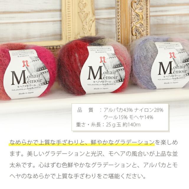 毛糸 並太 ハマナカ モヘアメモワール 日本製 アルパカ ウール モヘヤ グラデーション 手編み 編み物 ハンドメイド 帽子 マフラー スヌード ストール セーター ベスト