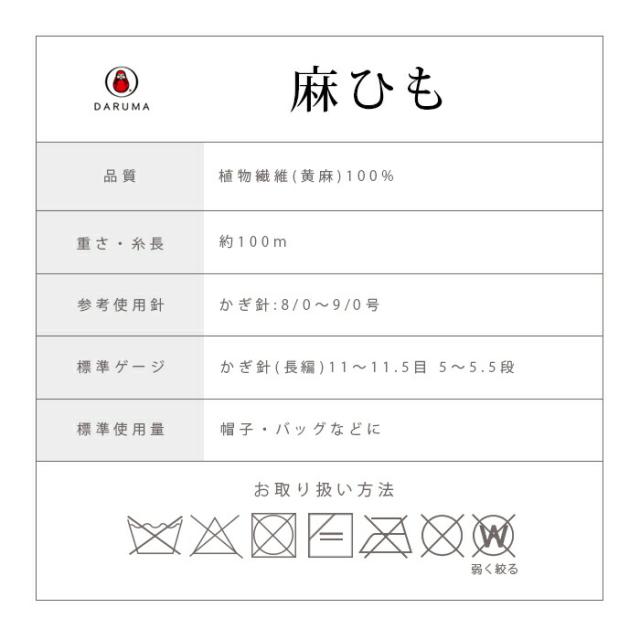 ダルマ毛糸 麻ひも 日本製 サマーヤーン 夏糸 麻ひも100% かぎ針 手編み 編み物 手芸 ハンドメイド 手作り 帽子 ポーチ バッグ かばん 小物
