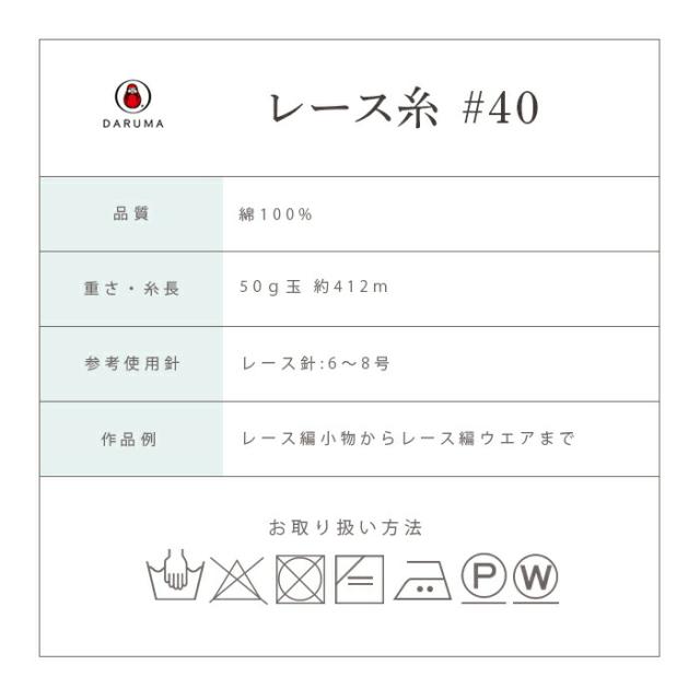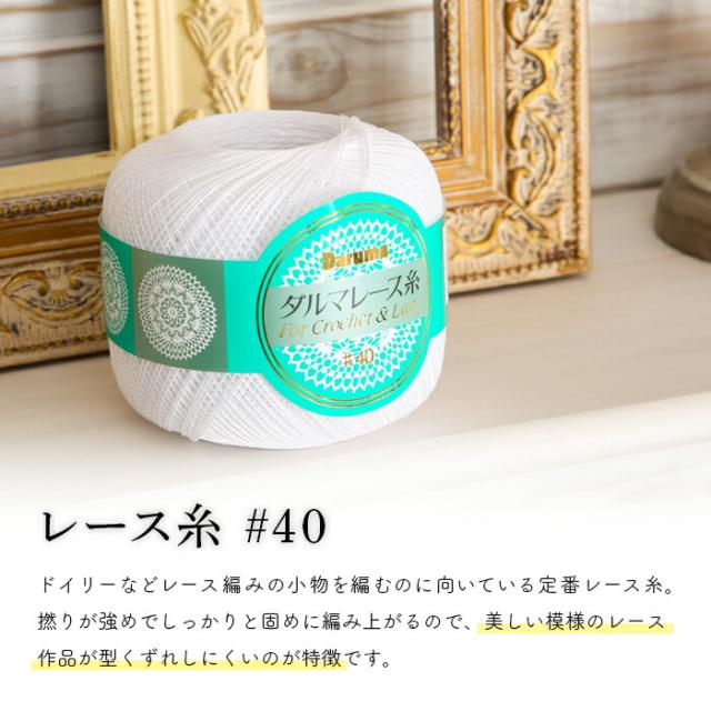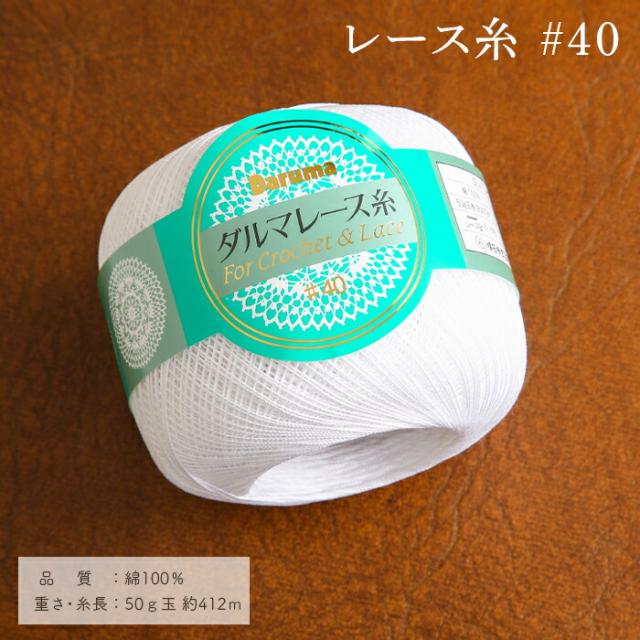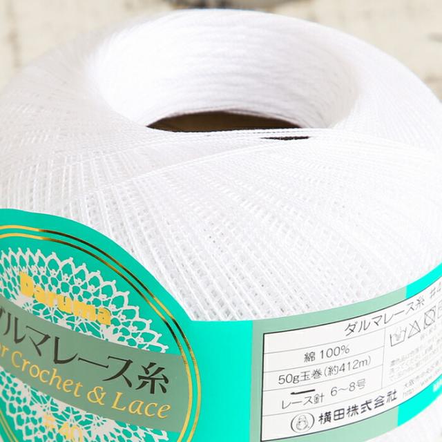 レース糸 40番 ダルマ レース糸 40番 #40 50g 白 ホワイト 日本製 綿 コットン かぎ針 レース針 レディース レース編み 手編み 編み物 手芸 ハンドメイド 手作り 帽子 ショール ストール セーター ベスト