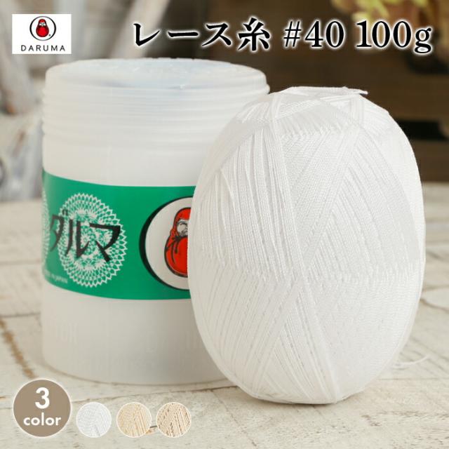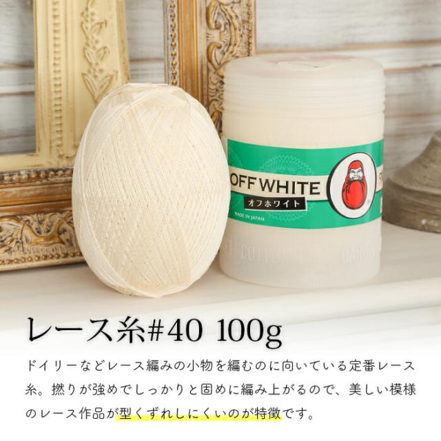 レース糸 40番 ダルマ レース糸 40番 #40 100g 白 ホワイト オフホワイト アイボリー 日本製 綿 コットン かぎ針 レース針 レディース レース編み 手編み 編み物 手芸 ハンドメイド 手作り ショール ストール セーター ベスト
