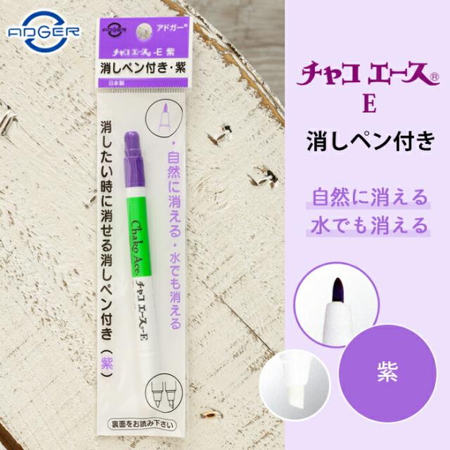 アドガー チャコエース チャコエースE 紫 自然に消える 水でも消える チャコペン 消しペン付き 太書き イレーサー 印付け 水性ペン 縫製 手芸用品 ハンドメイド 手芸 手づくり 手作りマスク