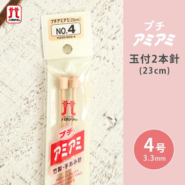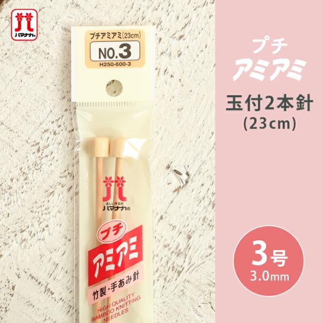 ハマナカ プチアミアミ 玉付2本針 3号 23cm 棒針 竹製 手あみ針 毛糸 編み針 編み物用品 手編み 編み物 ハンドメイド