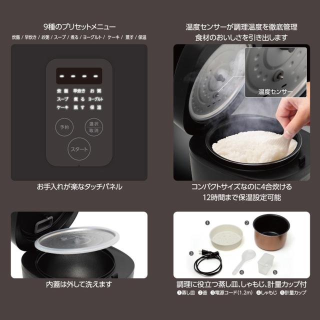1台9役!多彩な調理に対応可能な4合コンパクト炊飯器