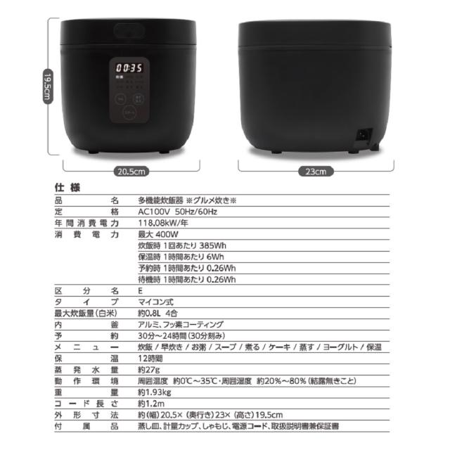 検索キーワード: 炊飯器 炊飯ジャー ジャー炊飯器 4合 3合 2合 1合 ご飯 お米 多機能 マルチ調理器 家庭用 おかゆ お粥 煮込み料理 煮る 煮物 早炊きスープ ケーキ 蒸す 蒸し料理 ヨーグルト 発酵 保温 コンパクトサイズ 小型 キッチン家電