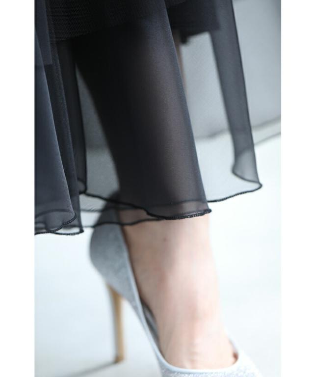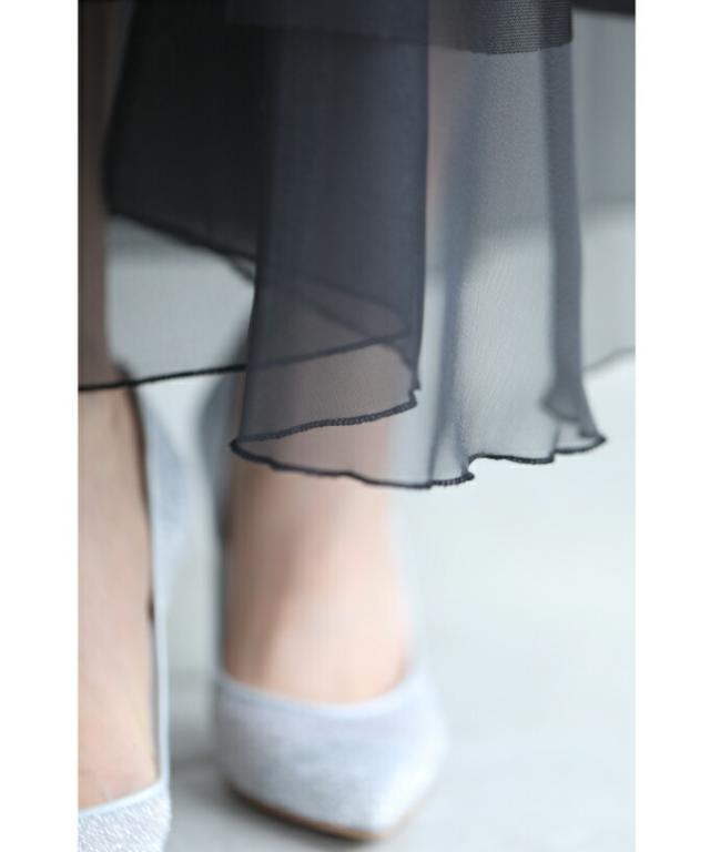 透け感のあるシフォン生地にチュールを重ねたデザインで、
