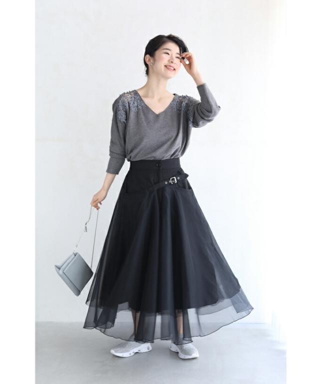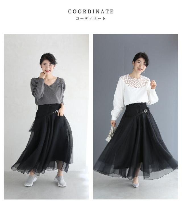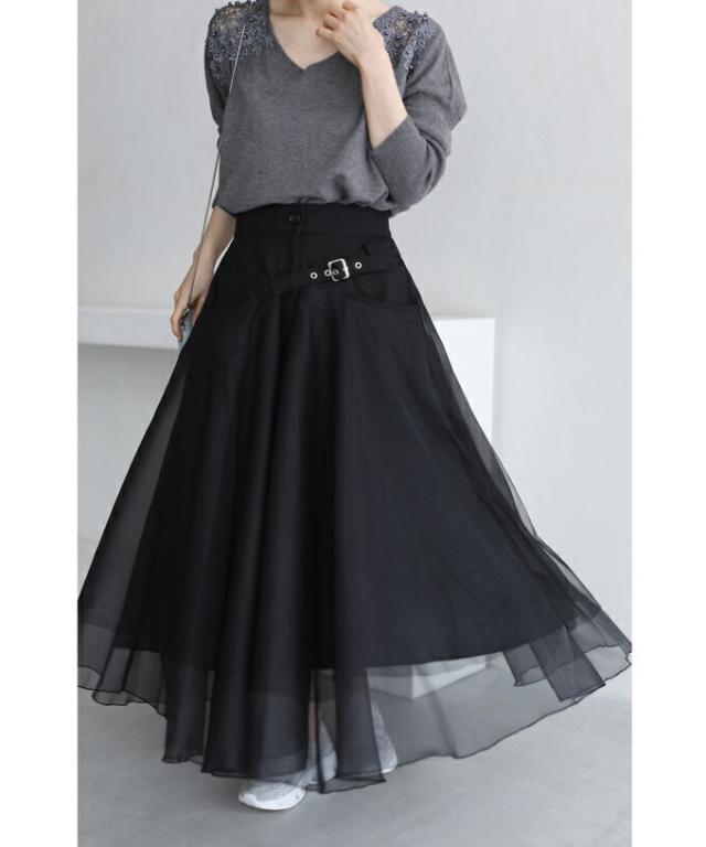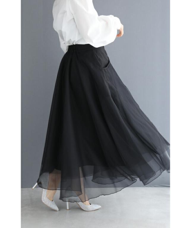 新作 新着 再入荷 CAWAII FRENCHPAVE フレンチパヴェ レディースファッション エレガント ベーシック カジュアル 可愛い かわいい カワイイ おしゃれ オシャレ お洒落 個性 個性的 定番 ベーシック 大人かわいい 大人可愛い 上品 女性らしい デザイン スタンダード ナチュラル きれいめ キレイめ シンプル フェミニン オーガンジー ベール 広がる ベルテッド ロングスカートボトムス マキシスカート マキシ丈スカート ウエストゴム 総ゴム S M L フリーサイズ フリー 小さめ 小さめサイズ小さい 小さいサイズ 低身長 痩せ ほっそり 小柄 細身 標準サイズ 大きめシルエット 大きい 大きめ ビッグシルエット ぽっちゃり F サイズ自由 秋服 秋物 春服 春物 体型カバー 体型隠し 体型隠れる お尻隠し 太もも隠し お腹隠し 隠れる 着痩せ 細見え 無地 ワンカラー ワントーン ブラック 黒色 おでかけ 休日 オケージョン パーティー 女子会?同窓会