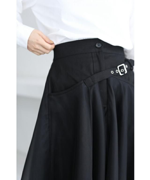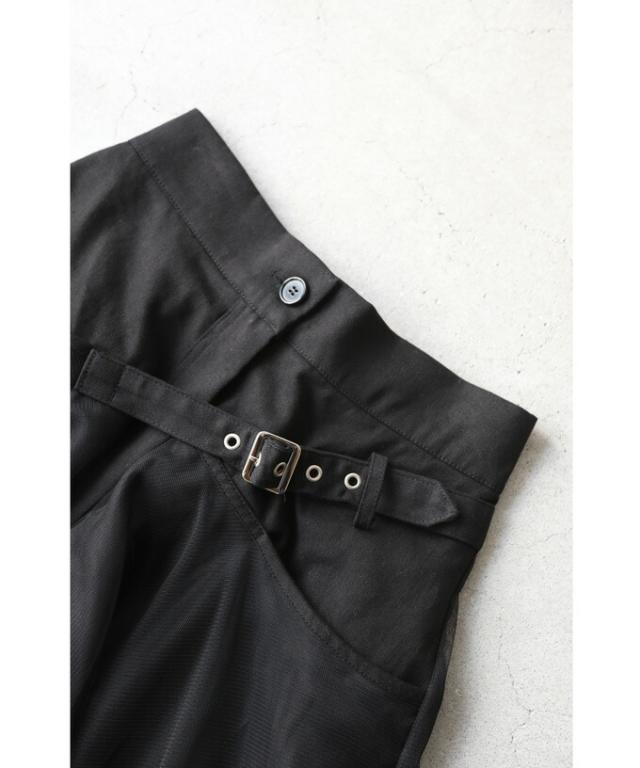 サイドにあしらわれたベルトがさりげないアクセントに。