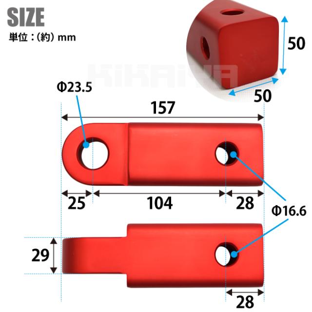 ヒッチレシーバー 5t レッド ヒッチメンバー ヒッチシャックルブラケット 最大荷重5000kg アルミ アルマイト アルミニウム マット KIKAIYA