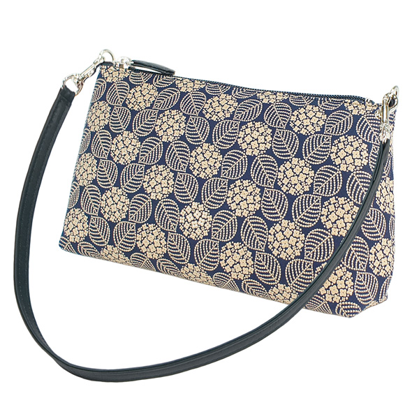 印伝 甲州印伝 印傳屋 上原勇七 化粧ポーチ 手提げ 4411 あじさい 紫陽花 紺地×白漆 鹿革 本革 レザー 花柄 ブランド 冬ギフト バレンタイン 贈り物 YM02