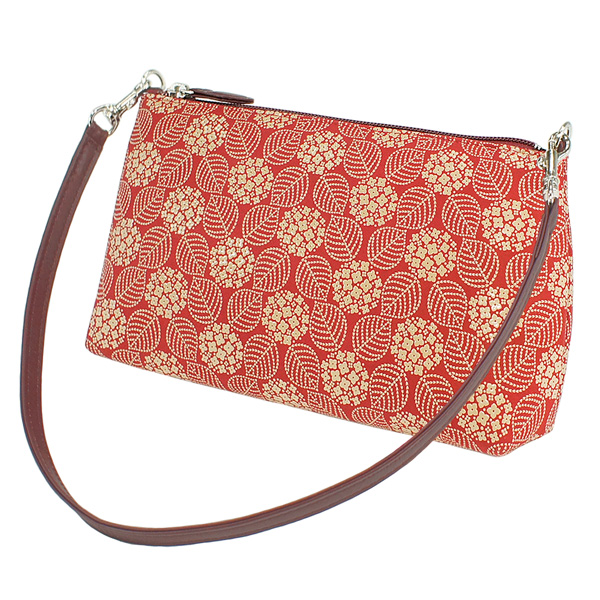 印伝 甲州印伝 印傳屋 上原勇七 化粧ポーチ 手提げ 4411 あじさい 紫陽花 赤地×白漆 鹿革 本革 レザー 花柄 ブランド 冬ギフト バレンタイン 贈り物 YM02