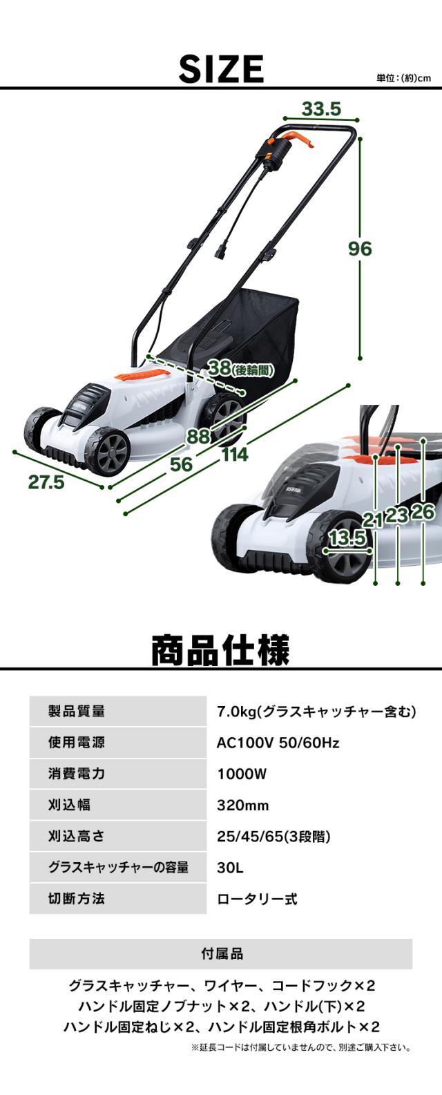 芝刈り機 電動芝刈機 芝 芝刈り G-320 ホワイト 庭 芝生 ガーデン 剪定 園芸 garden 庭園 バリカン 草刈機 雑草 電動芝刈り機 アイリスオーヤマ 送料無料