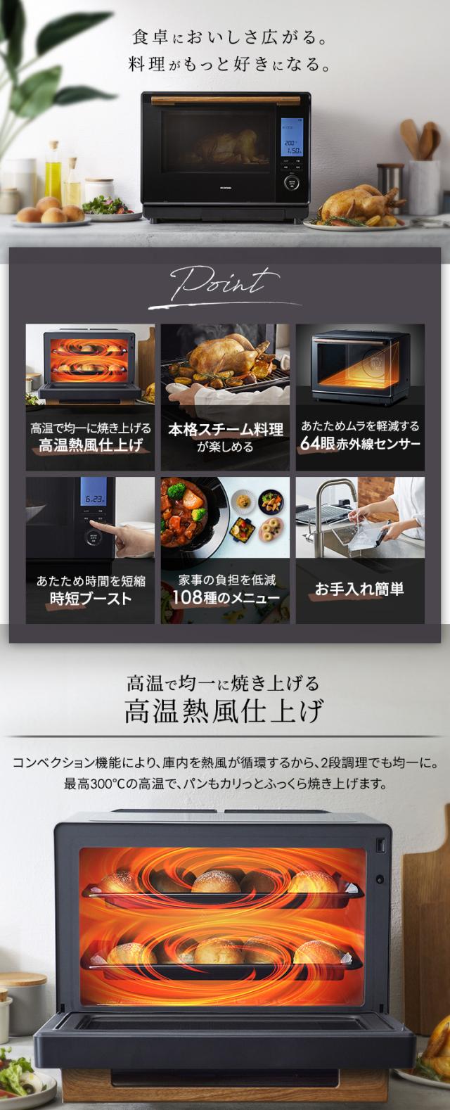 オーブンレンジ 電子レンジ アイリスオーヤマ 30L スチームオーブンレンジ 30L MS-F3002-B 電子レンジ オーブンレンジ オーブン グリル スチーム レンジ フラットテーブル 時短ブースト コンベクションオーブン 2段 おしゃれ 送料無料