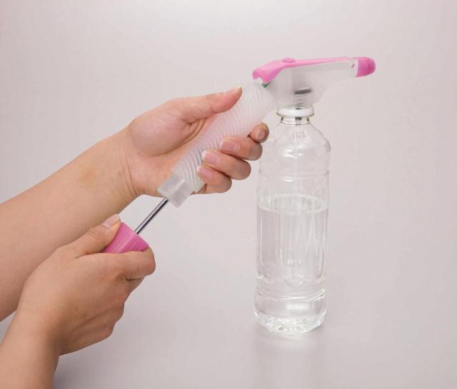 | ■水流調節つまみでジェットからミストまで噴射が可能。 ■植物のお手入れからお掃除まで幅広い用途に使用可能。 【商品仕様】 ●本体サイズ(約):全長220mm×厚み32mm ●チューブサイズ(約):直径0.4mm×長さ280mm ●重さ:約92g ●本体材質:ポリプロピレン ●チューブ材質:ポリエチレン ●使用ペットボトル:500ml以上 ●水流調節:ミストスプレー・ジェットスプレー切替可能 【使用方法】 1.本体下部のチューブ差込口にチューブを差し込んでください。 2.ペットボトルに水又は溶液を入れ本体にしっかりねじ込みます。 ※ペットボトルは市販の500ml以上をお使いください。液体の量はペットボトル容量の2/3以下でご使用ください。 3.本体をしっかり持って、加圧ポンプを前後させて加圧します。 ※ポンプを前後させると徐々にキツくなってきます。加圧ポンプが1cm位で止まるようになったら、それ以上加圧しないでください。 4.本体上部のハンドルを握ると先端から水が出ます。 水流調節つまみを廻せばミストスプレー・ジェットスプレーに調節できます。用途に合わせてご使用ください。 |