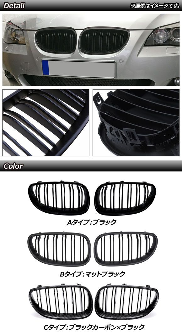 フロントグリルカバー BMW 5シリーズ E60/E61 2003年〜2009年 ブラック Aタイプ ABS製 ダブルバー AP-FG330-A 入数:1セット(2個)