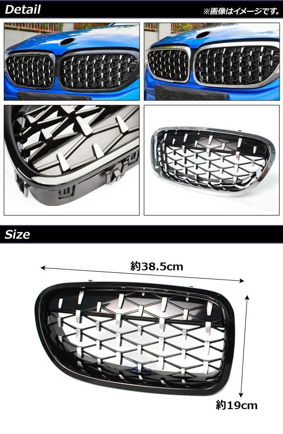 フロントグリルカバー BMW 5シリーズ F10/F11/F18 2010年〜2016年 シルバー ABS製 入数:1セット(2個) AP-FG276-SI ダイヤモンド型グリル フロントグリルガーニッシュ バンパーグリルカバー バンパーグリルガーニッシュ グリルガーニッシュ グリルカバー バンパーガーニッシュ フロントグリル フロント フロントフェイス グリル バンパー カバー フレーム ガーニッシュ リム トリム ベゼル メッキ メッキパーツ プロテクト プロテクター 傷予防 傷付き防止 外装 外装パーツ パーツ エクステリア ドレスアップ カスタム カスタマイズ 装飾 装飾パーツ ABS ABS樹脂 銀 SILVER クローム CHROME 鏡面 ミラー MIRROR 5SERIES ビーエムダブリュー ビーエムダブル ビーエム automobile motorcar オートモービル モーターカー カー 車 自動車 車両 503640140
