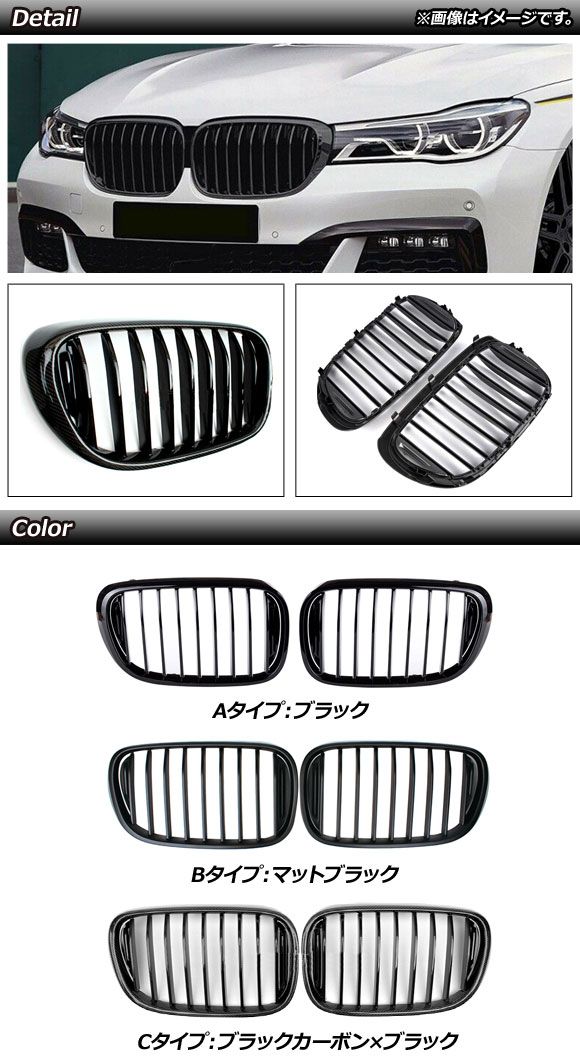 フロントグリルカバー BMW 7シリーズ G11/G12 2015年〜2019年 マットブラック Bタイプ ABS製 シングルバー 入数:1セット(2個) AP-FG339-B