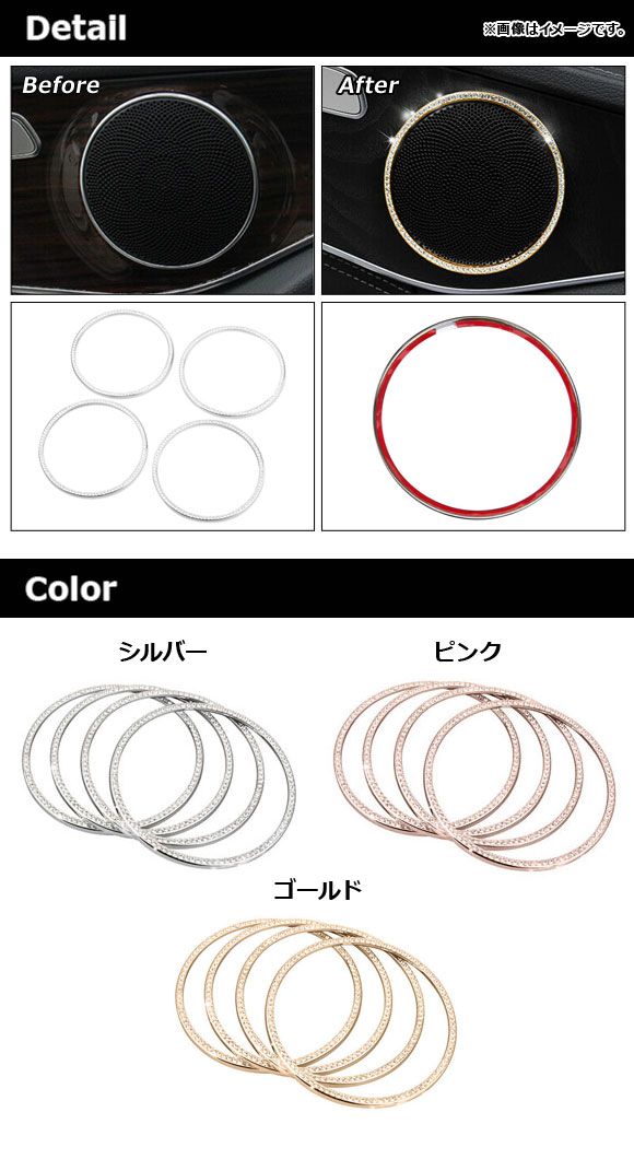 スピーカーリングカバー メルセデス・ベンツ Cクラス W205 2014年〜 ゴールド ラインストーン付き 入数:1セット(4個) AP-IT966-GD