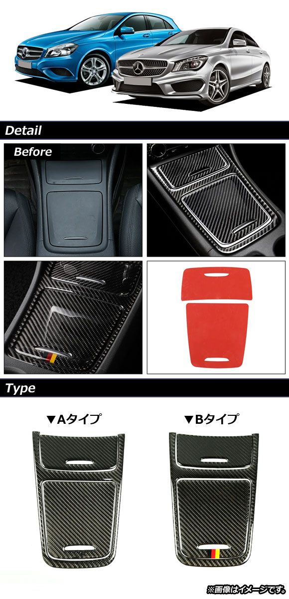 コンソールパネルカバーセット メルセデス・ベンツ CLAクラス C117 2013年〜2018年 ブラックカーボン調 Bタイプ カーボンファイバー製 入数:1セット(3個) AP-IT887-B